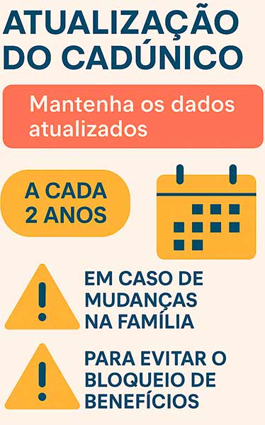 Muitas pessoas não sabem que o CadÚnico deve ser atualizado a cada dois anos ou sempre que houver alterações na família. Isso causa bloqueio ou suspensão de benefícios como: